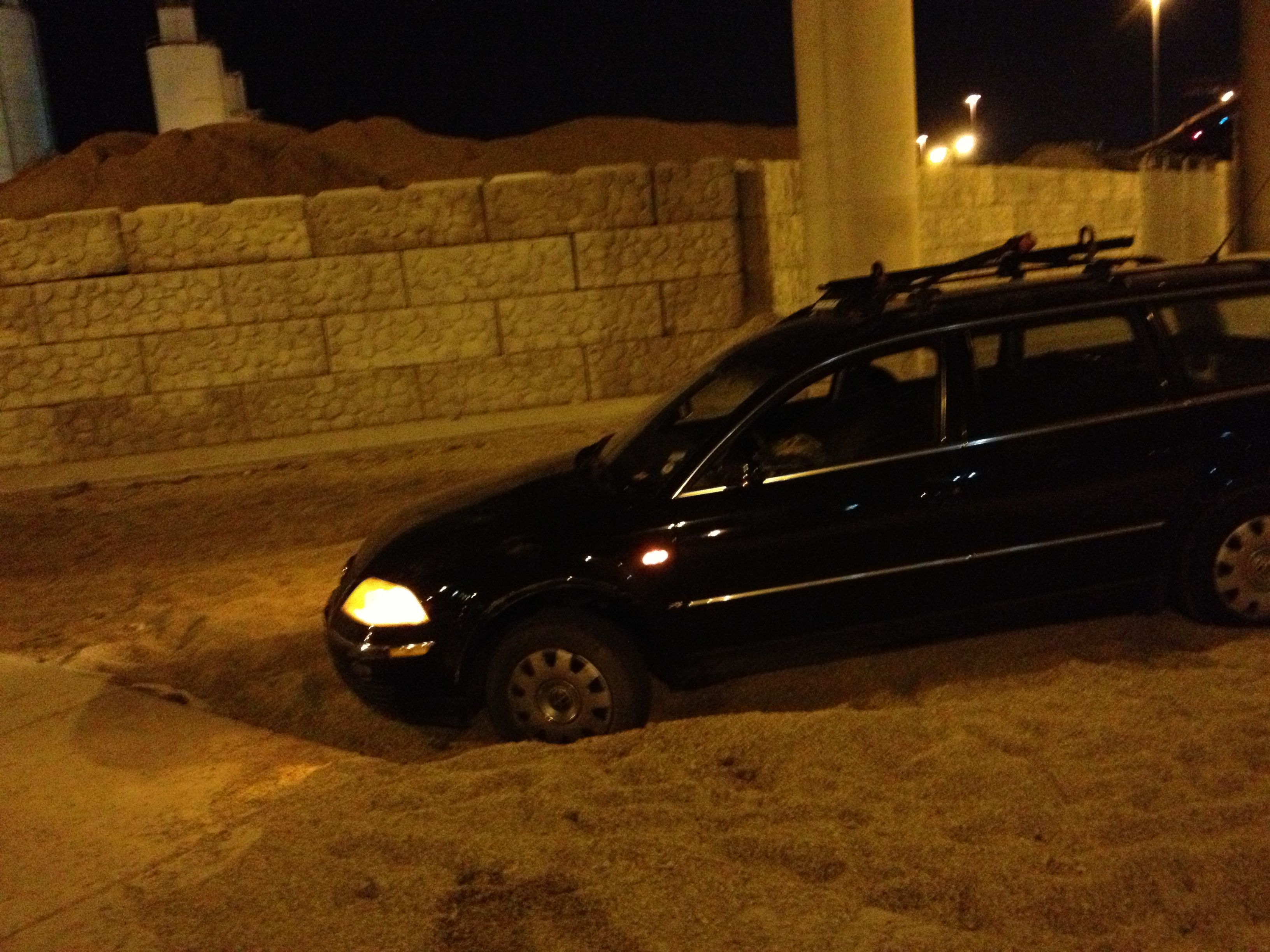 You try to jerk the car forward and again in reverse… you try it again and again. but the only motion is the scent of burning rubber as it winds its way through your nasal passages. Your friend Steve’s art opening is in that warehouse, less than one block away. You’re so close, you can almost touch it, but you’re not there yet. If you leave the car in the gravel pit, maybe someone will tow it. Or maybe someone will set it on fire. And maybe this is what is meant to happen.